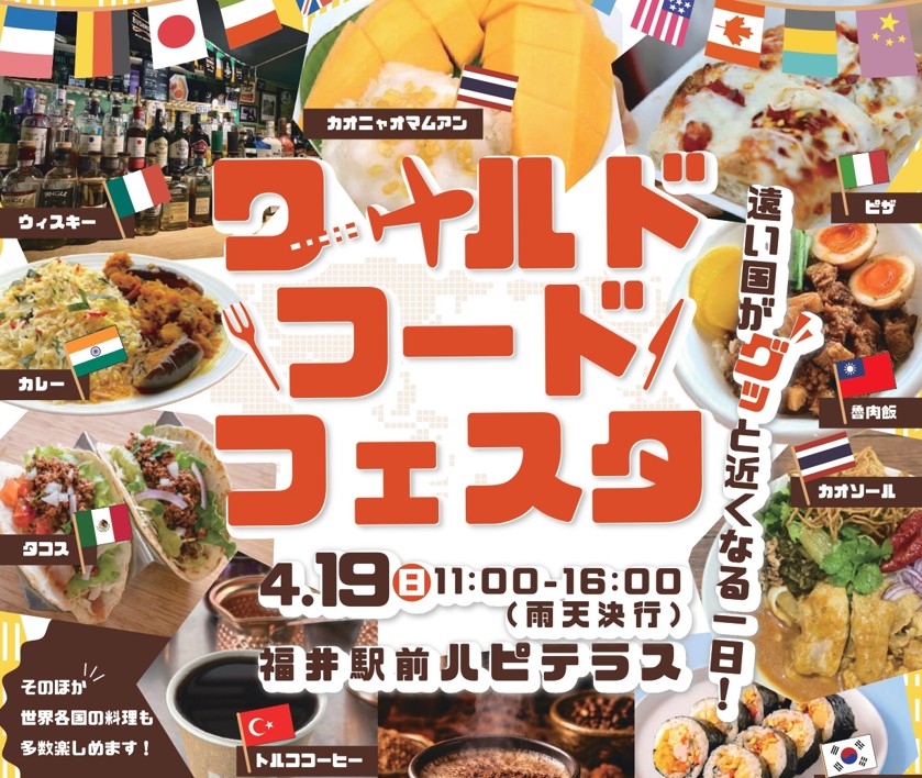 4月19日(日) ハピテラスで『ワールドフードフェスタ』を開催!