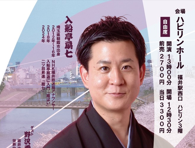 4月4日(土) ハピリンホールで『入船亭扇七 春の福井落語会』を開催!