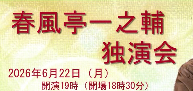 6月22日(月) ハピリンホールで『春風亭一之輔 独演会』を開催!