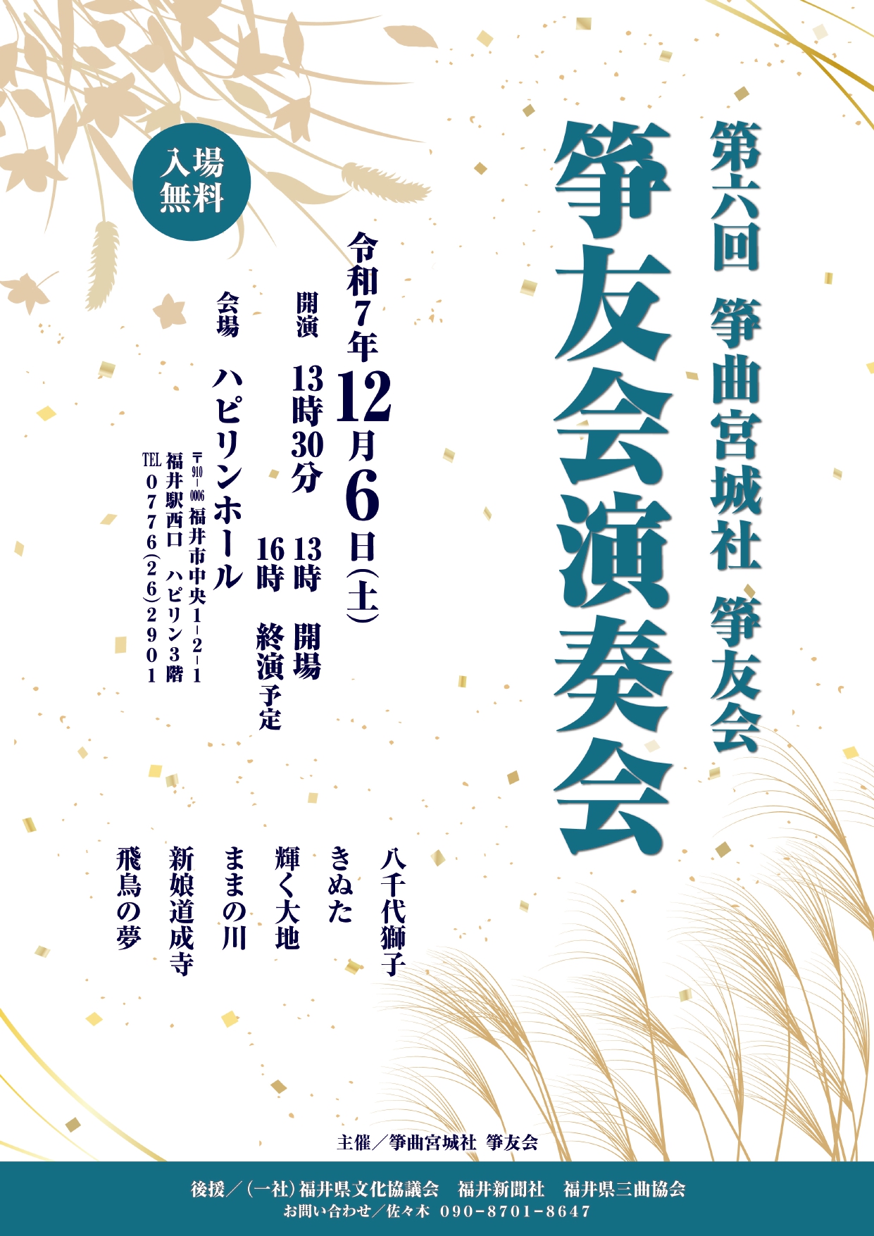 12月6日(土) ハピリンホールで『箏友会 演奏会』を開催!