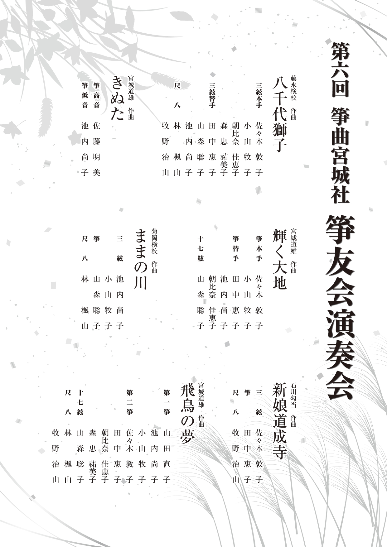●お問い合わせ: 筝曲宮城社 TEL:090-8701-8647(佐々木)
