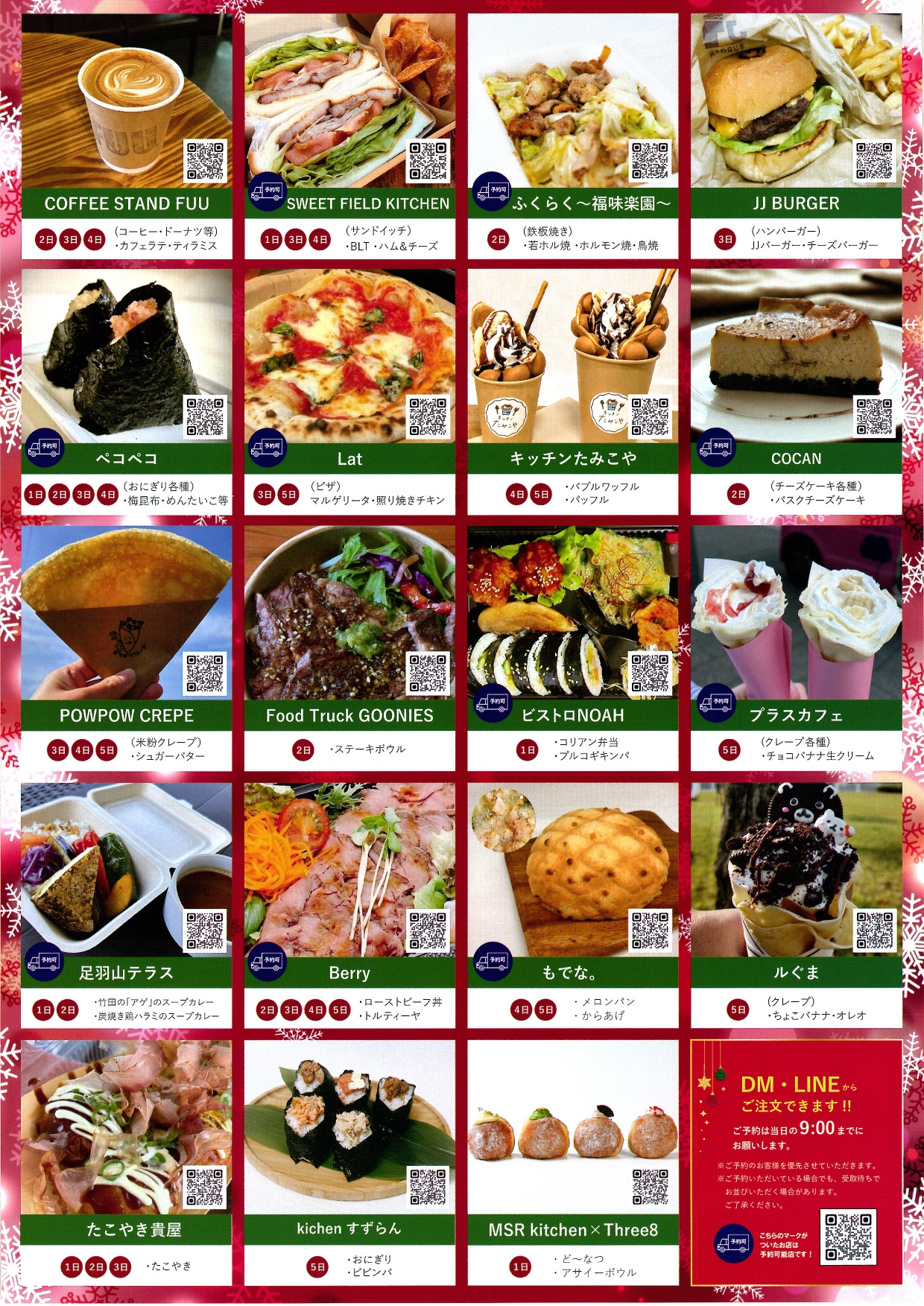 12月1日(月)~5日(金) ハピテラスで『冬のキッチンカーまつり』を開催! 2025 11/13 主催事業 目次冬のキッチンカーまつり 人気のキッチンカーがハピテラスに大集合! ●日時: 12月1日(月)~5日(金) 全日程11:00~19:00 ●場所: ハピリン1階 ハピテラス ●お問い合わせ: まちづくり福井(株) TEL:0776-30-0330 主催事業 12月6日(土) ハピリンホールで『箏友会 演奏会』を開催! 11月29日㈯30日㈰ハピテラスで『幸せ もちもち 満腹祭2025』開催