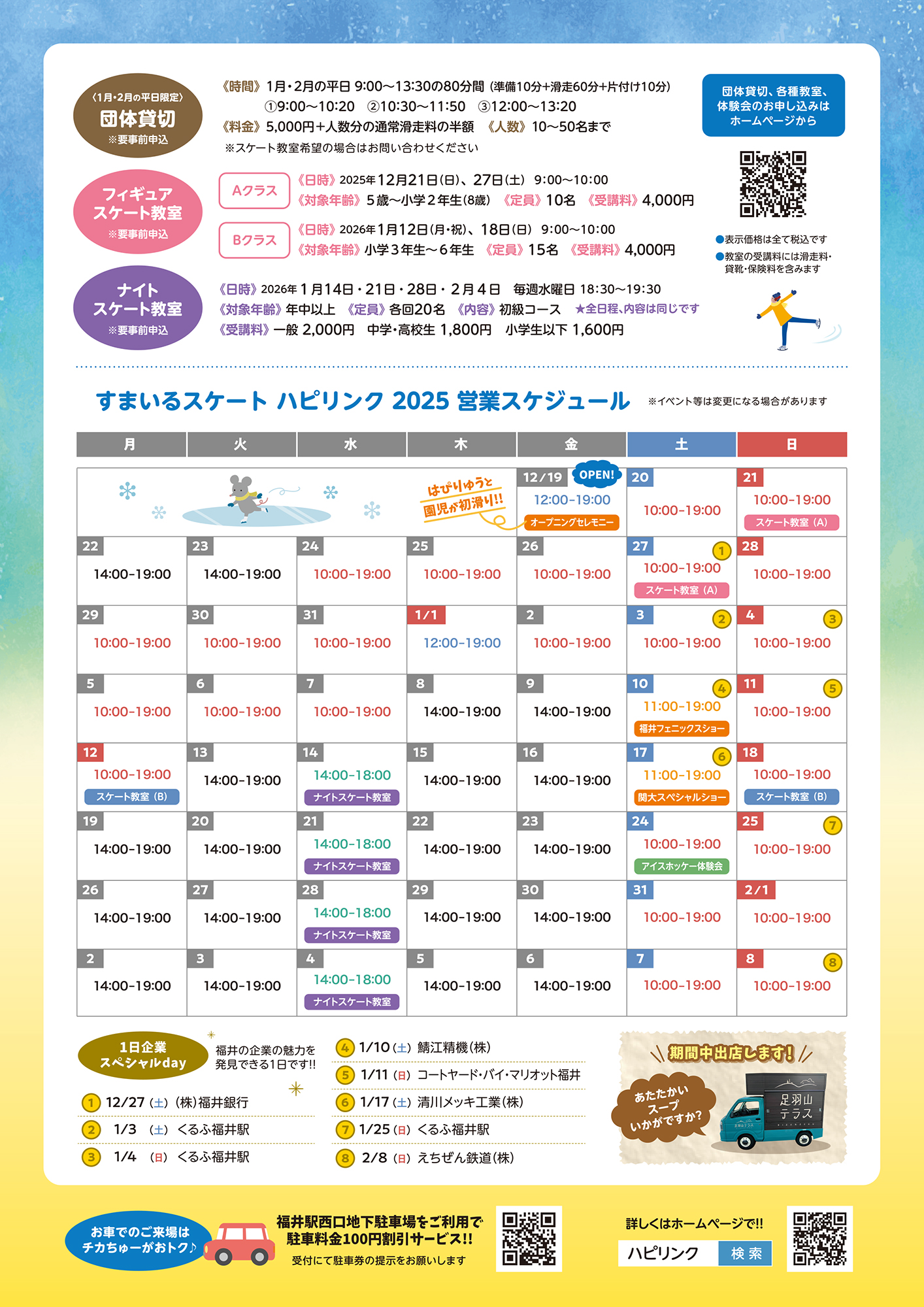 ●日時: 【フィギュアスケート教室】Aクラス 12月21日(日)・27日(土) 9:00~10:00