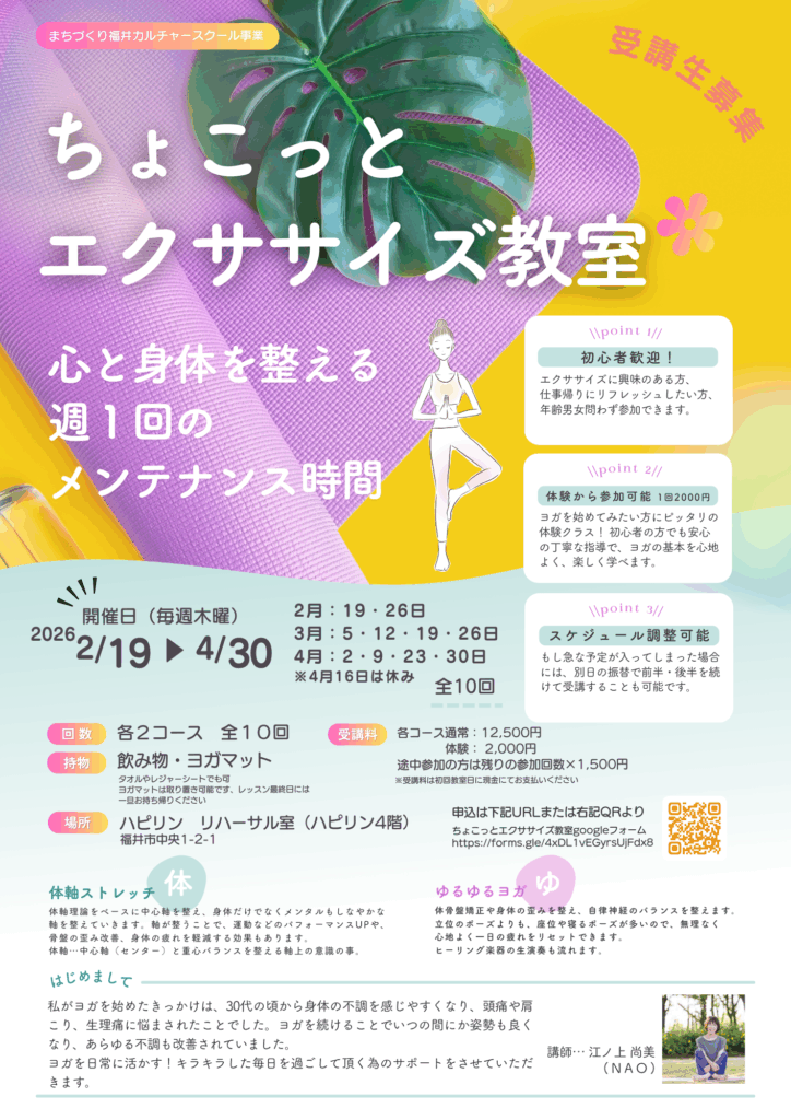 そんな方におすすめの、初心者歓迎エクササイズ教室です。