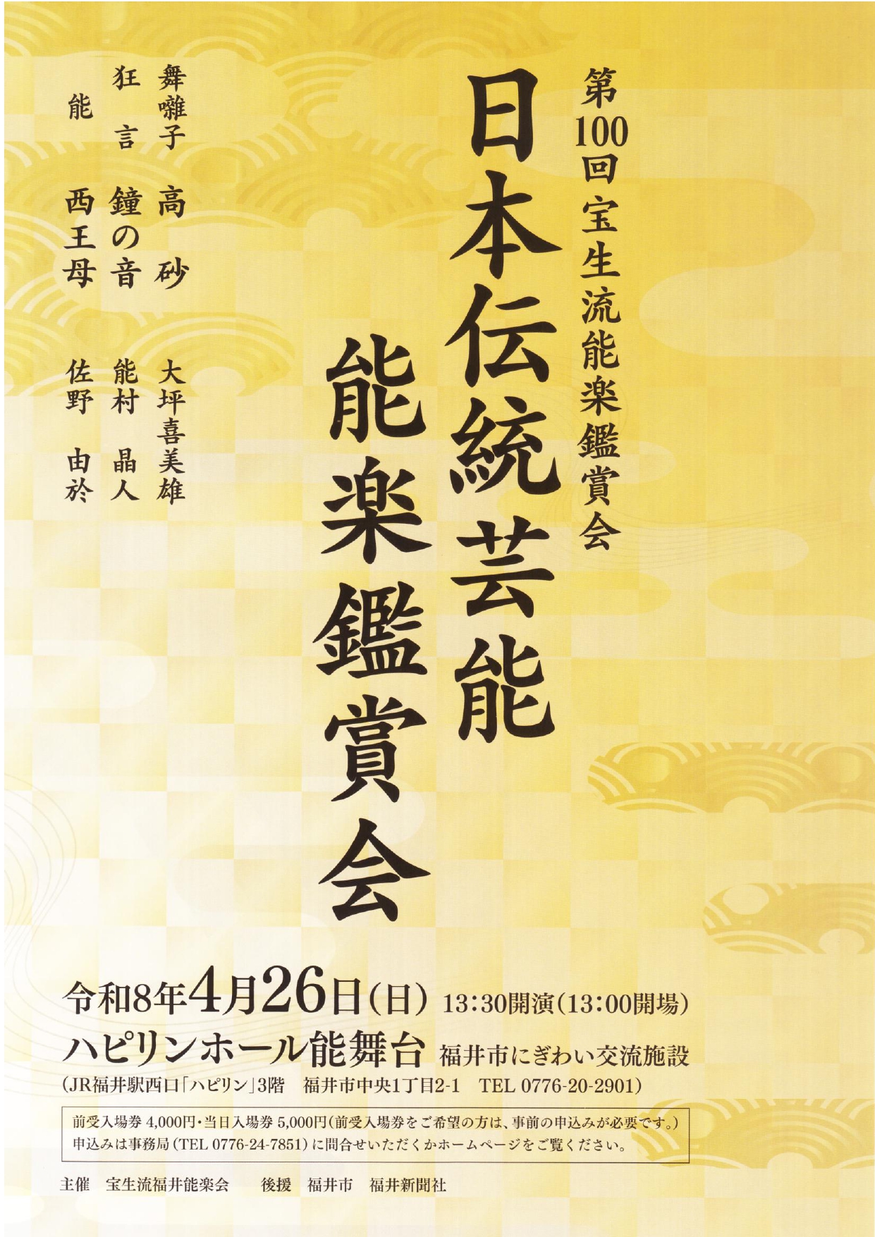 ●お問い合わせ・お申し込み先: 宝生流福井能楽会 事務局 TEL:0776-24-7851(天野) / http://www.mitene.or.jp/~y-sato