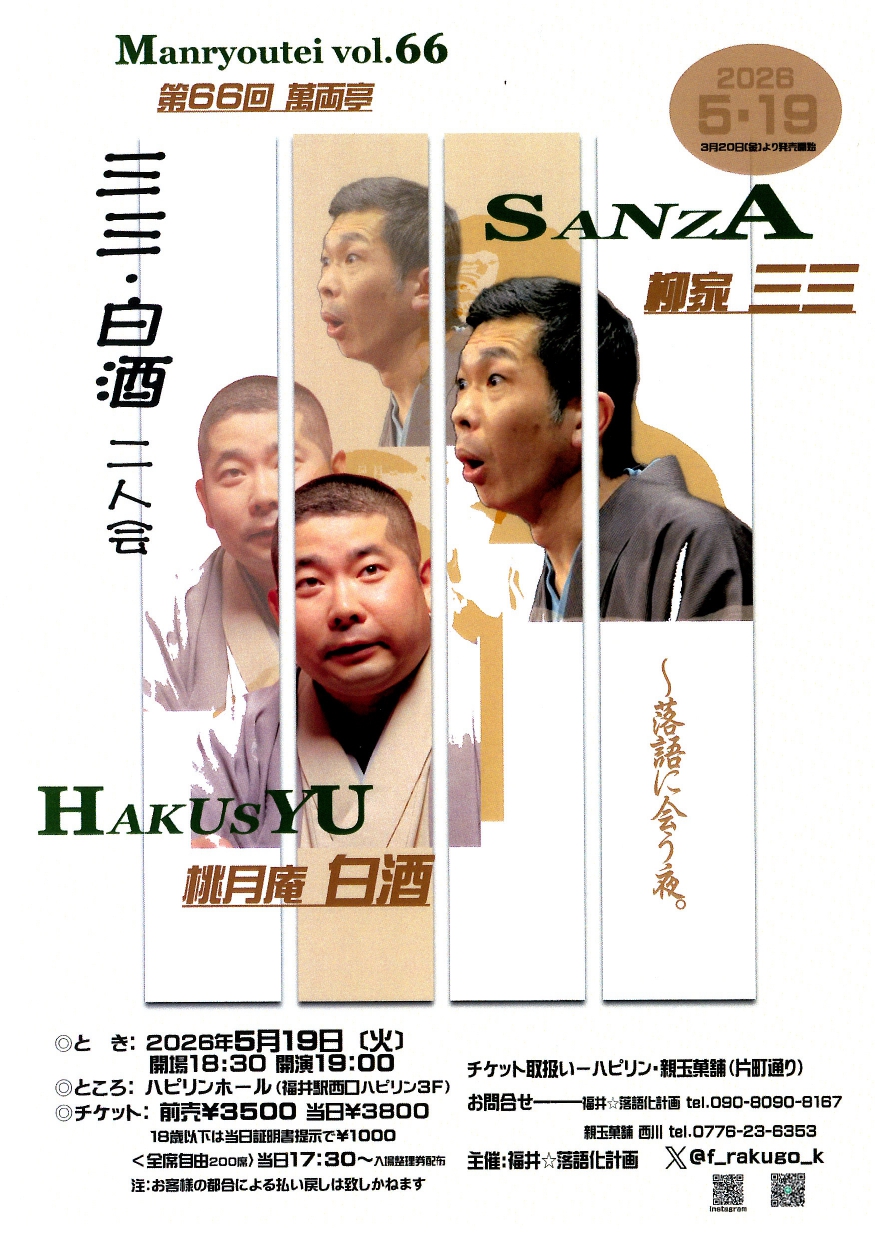 ●お問い合わせ: 福井☆落語化計画 TEL:090-8090-8167(西川)/ 親玉菓舗 TEL:0776-23-6353